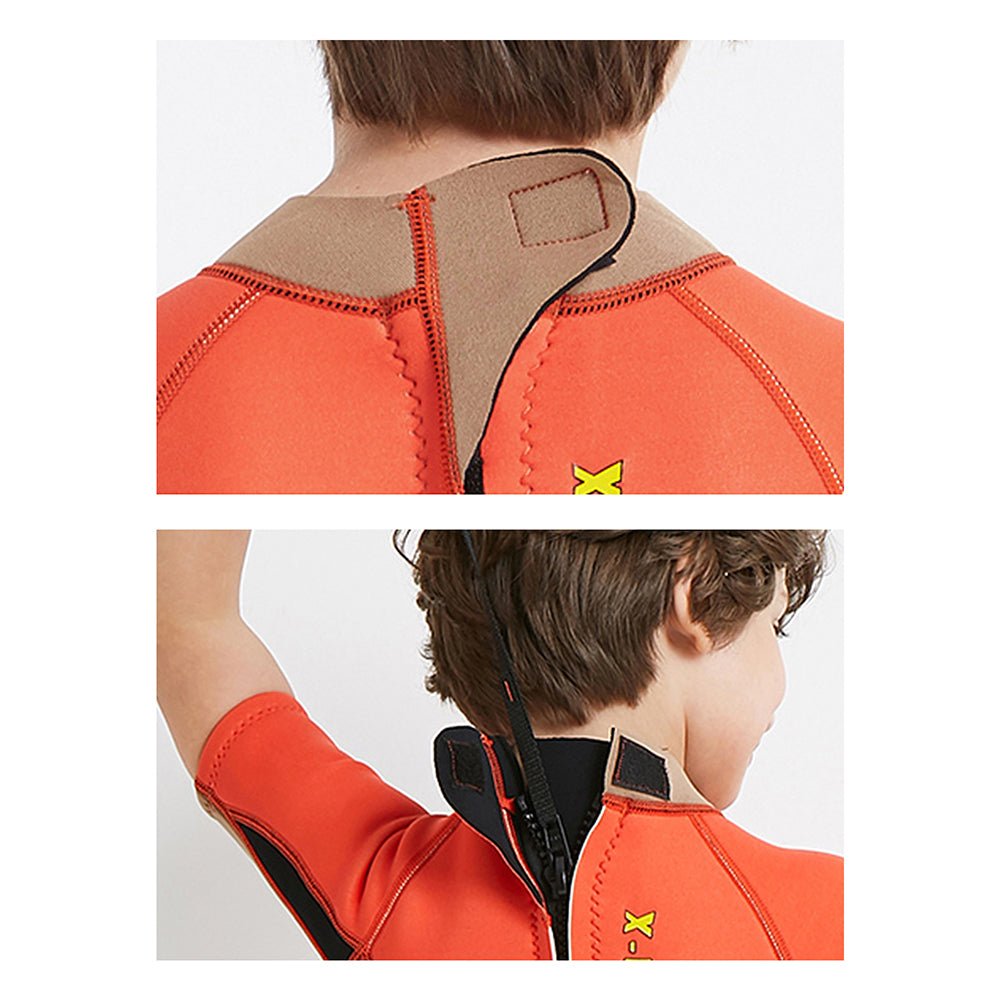 • BACK ZIPPER DESIGN : This wetsuit is designed with a back zipper which is easy to wear. Zipper with a long belt for easy to put on and take off . There is a layer of fabric inside the zipper to avoid zipper damage to the child's skin.