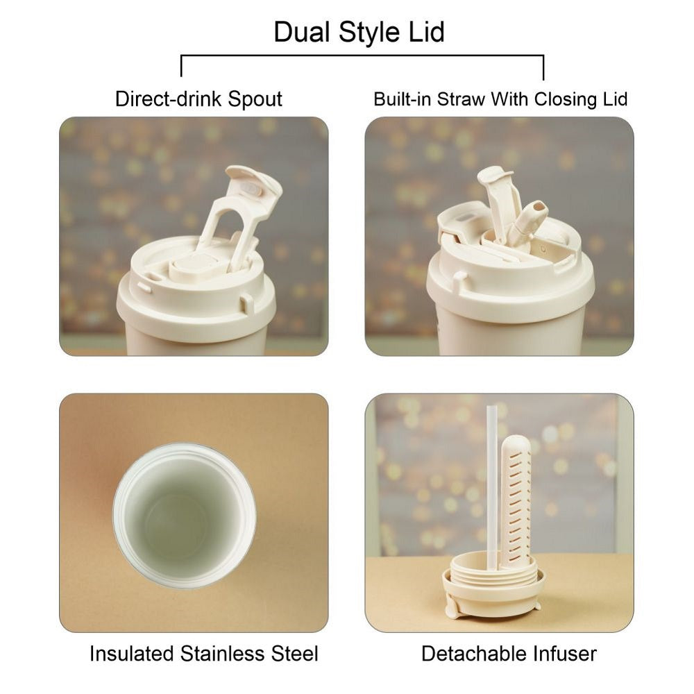 Built in detachable Infuser attachment: Featuring a built-in infuser, it allows you to brew loose tea, infuse fruit flavors, or enjoy your favorite beverages on the go while keeping them at the perfect temperature for hours.
