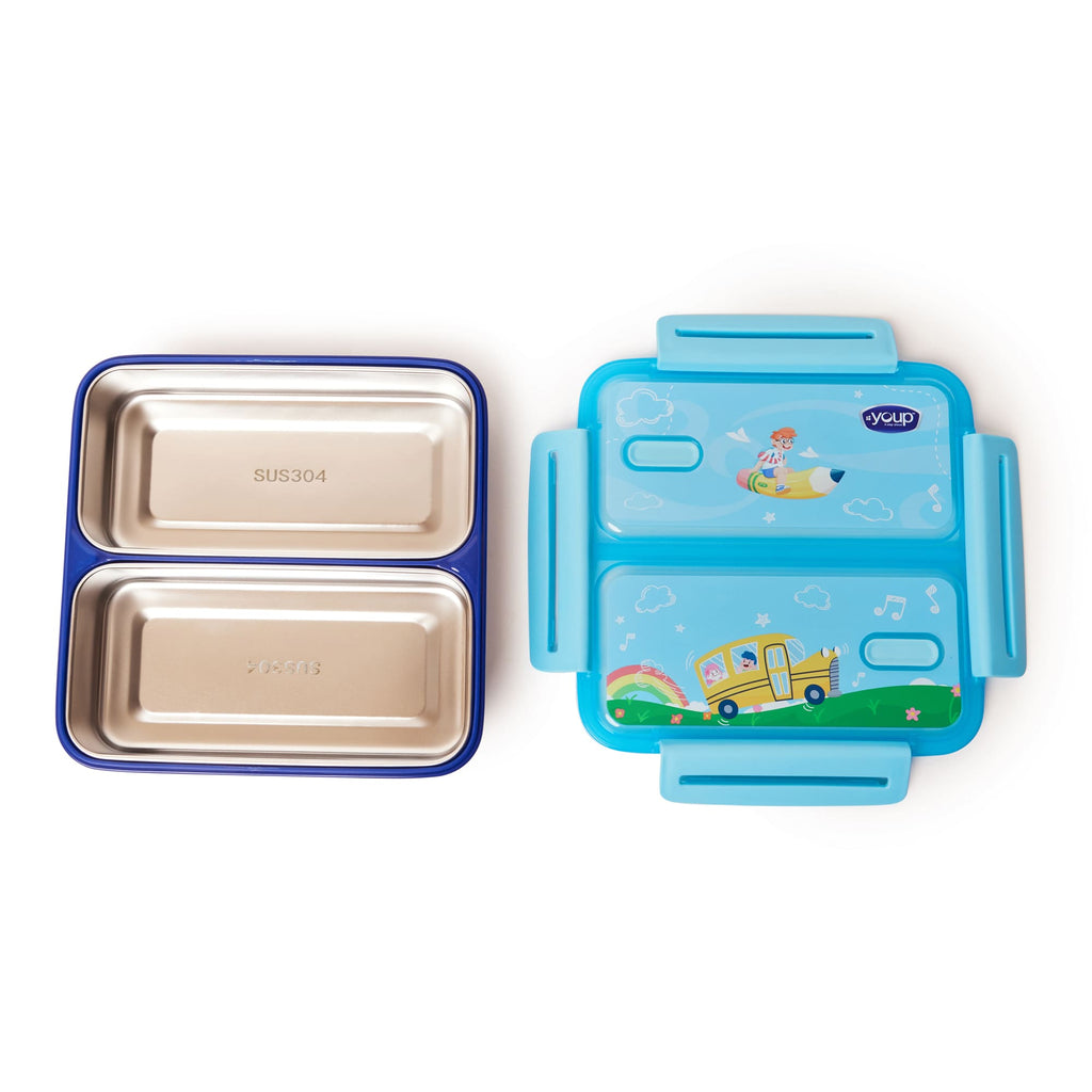 Youp Stainless Steel Blue Color Kids Bento Lunch Box With 2 Compartments Tycoon - 1100 ml