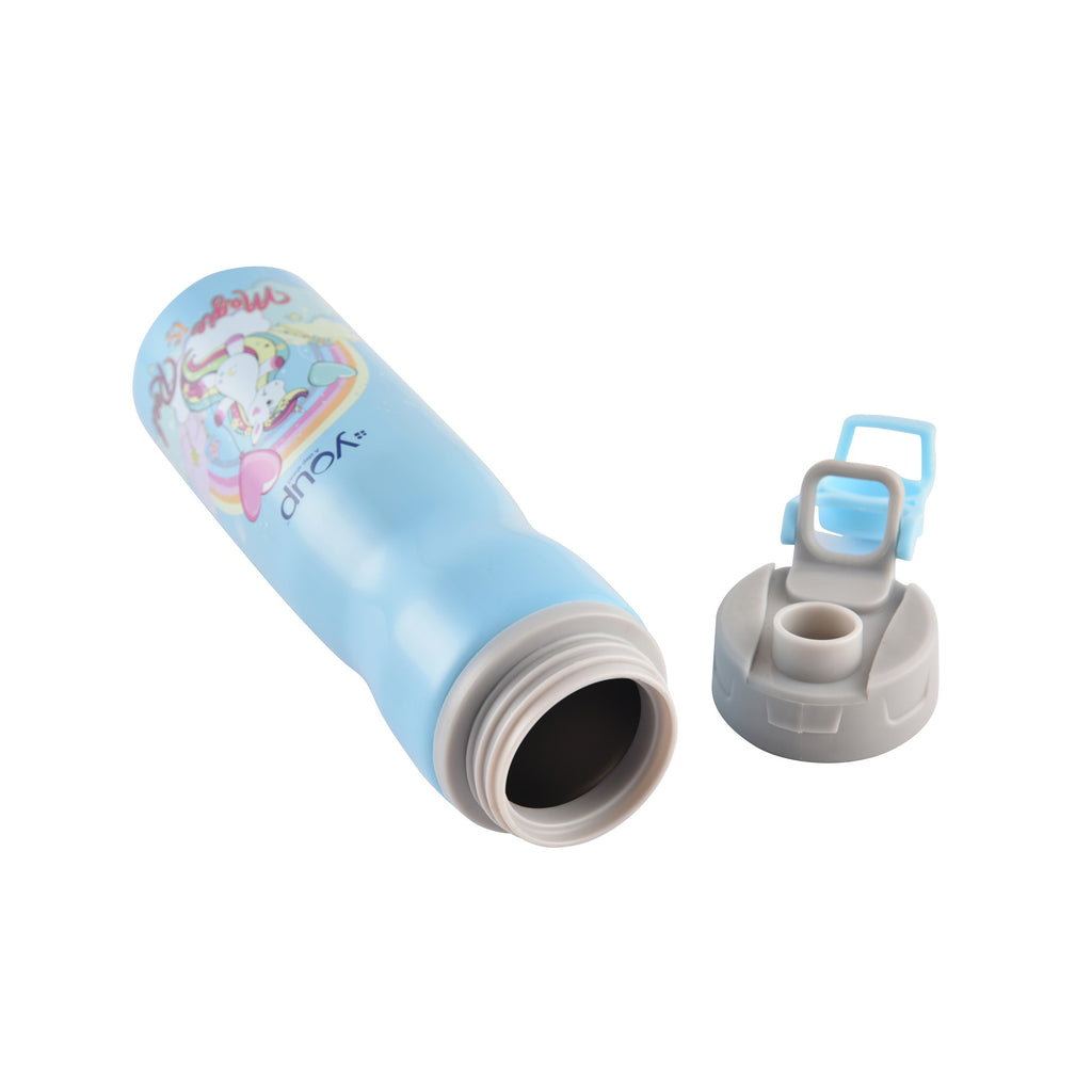 Youp is a non-insulated kids water bottle of 750 ml capacity that is designed on the legendary Unicorn theme which is a craze among kids since antiquity. Crafted from high quality stainless steel, it can be used for carrying both hot and cold beverages. Its push to open cap and external hard loop handle makes it easy to carry around and pour the liquid in cups or glasses.
