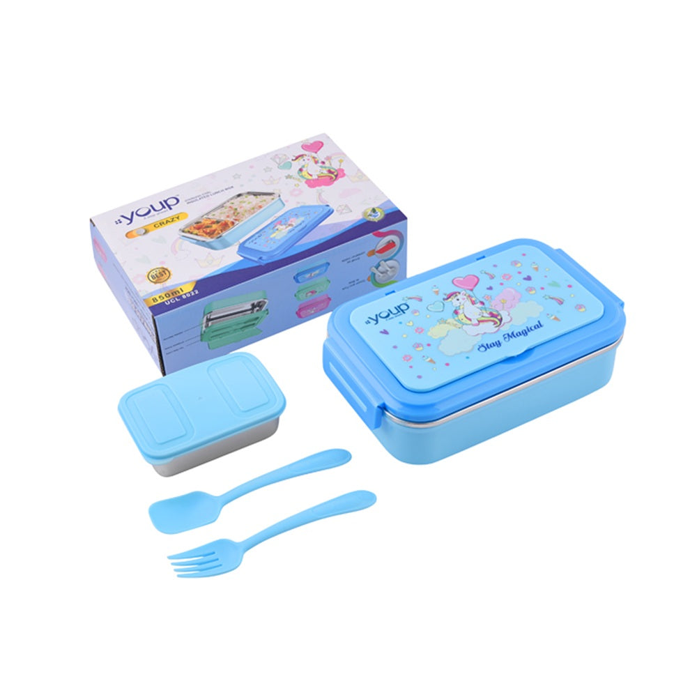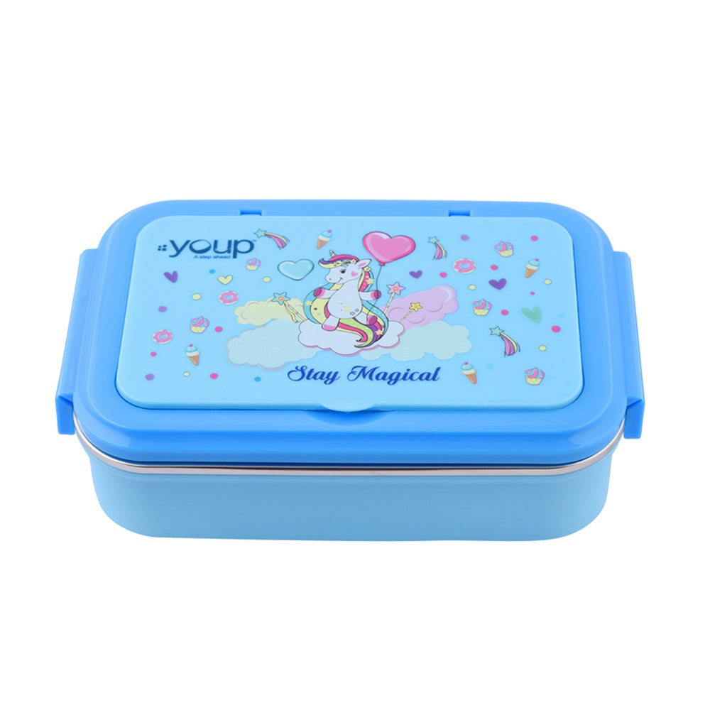 Youp's stainless steel lunch boxes of 850 ml capacity are especially designed on kid's favourite Unicorn theme for suiting the demands of kids. Just like the Unicorn, which is a symbol of strength and beauty both at the same time, the aims at instilling a special feeling of love and care and at the same time strength and power to your little one. Give wings to your kids imagination with his/her own personal magical unicorn.