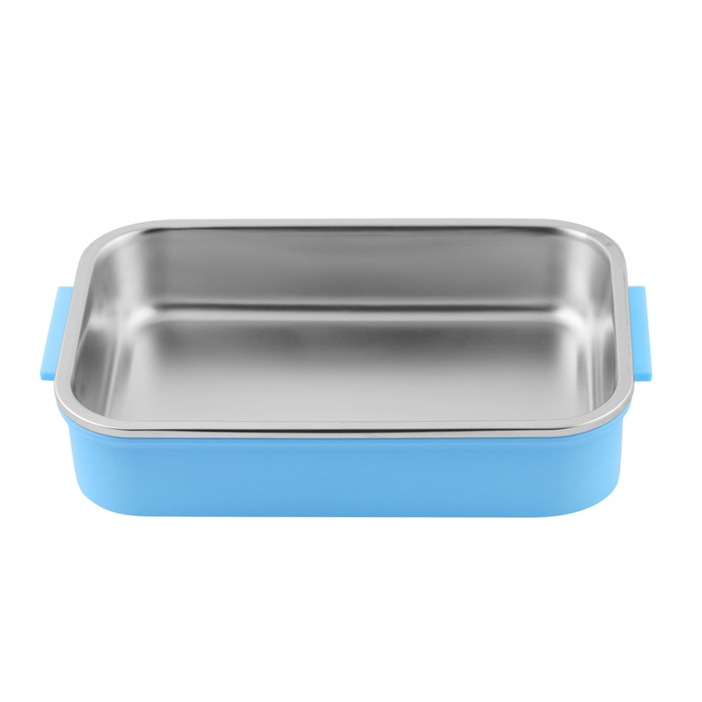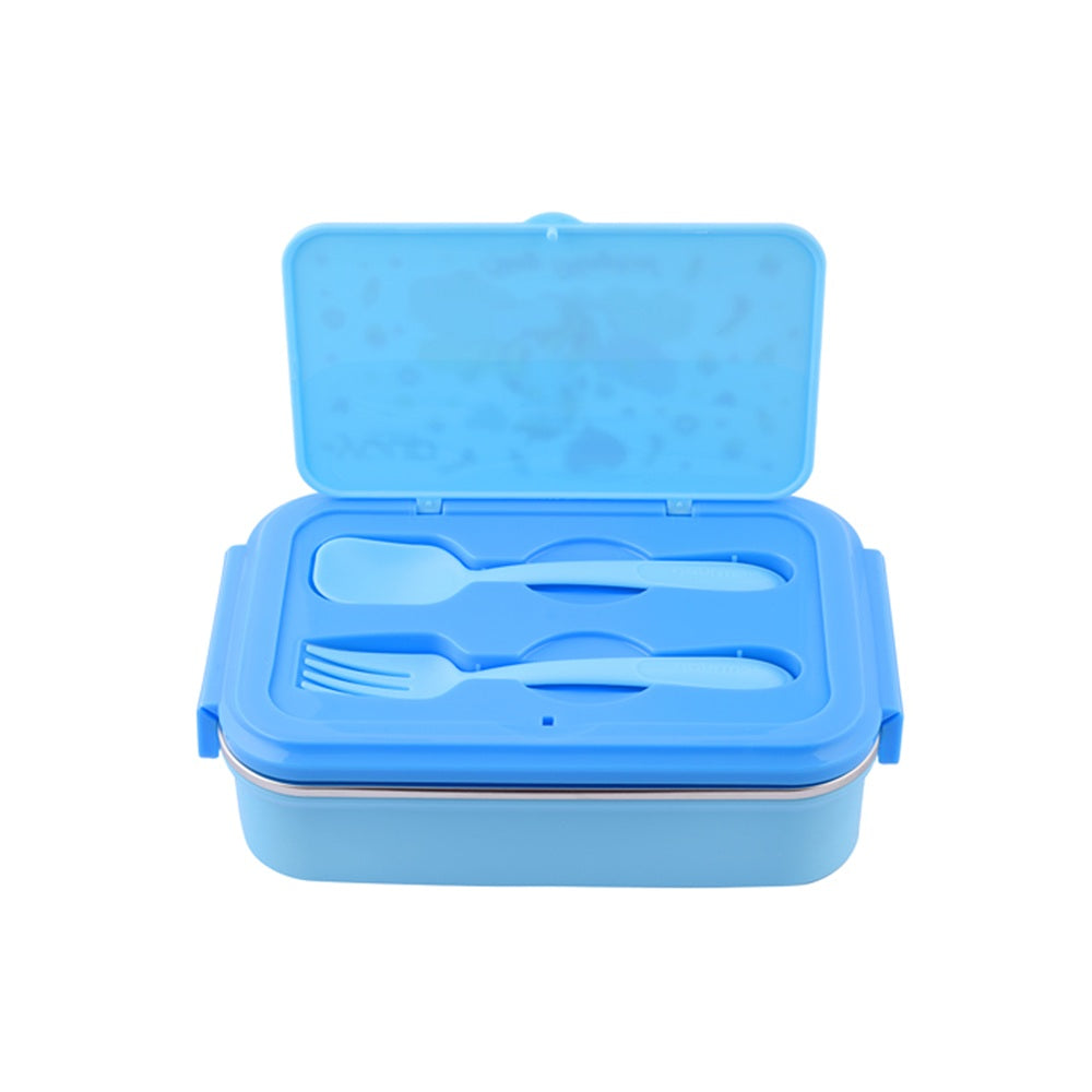 Comes with a lid having an extended fastening design which closes on the box body ensuring absolutely no leakages or sprinkles, giving your child a non-messy meal. Additionally, it also has a push to open upper panel with a fork and spoon inside making it more attractive for kids use. The also comes with a small container inside that is perfect for holding veggies, pickles or ketchup.