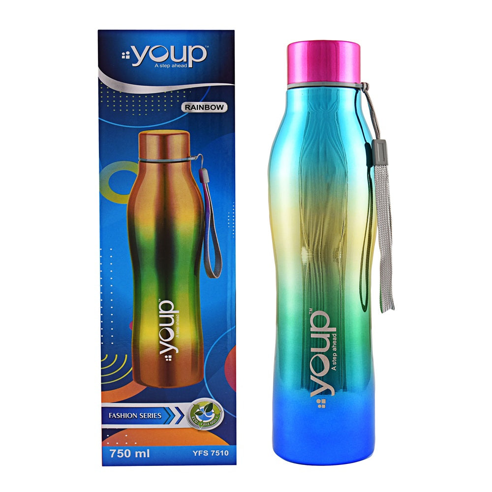 Stainless steel Fashion series water bottle: Rainbow by Youp is a stainless steel bottle of 750 ml capacity is crafted from high quality stainless steel that can be used for carrying both hot and cold beverages in a fashionable manner.
