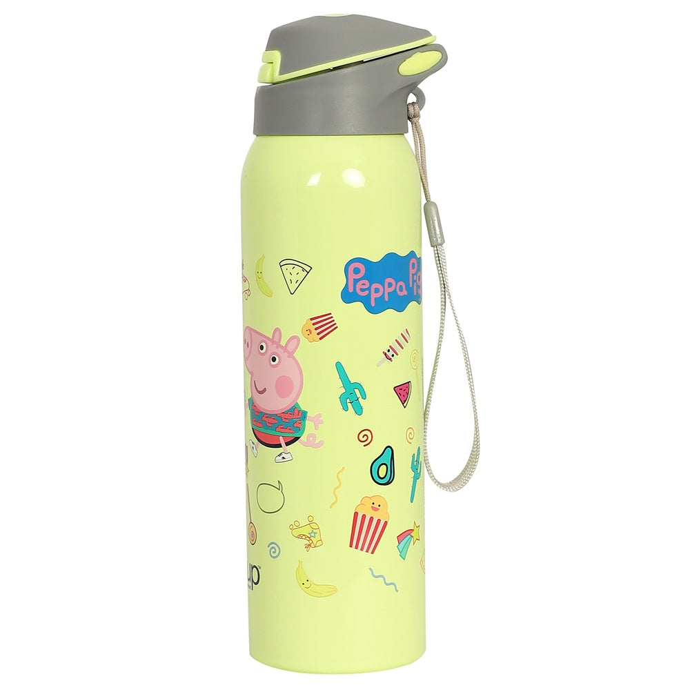 Youp Stainless Steel Green Color Peppa Pig Theme Kids Insulated Double Wall Sipper Bottle Googlie - 500 ml