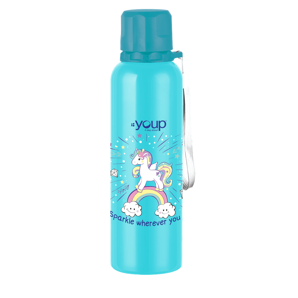Ocean by Youp is a non-insulated kids water bottle of 750 ml capacity that is designed on the legendary Unicorn theme which is a craze among kids since antiquity. Crafted from high quality stainless steel, it can be used for carrying both hot and cold beverages. Its push to open cap and external hard loop handle makes it easy to carry around and pour the liquid in cups or glasses.