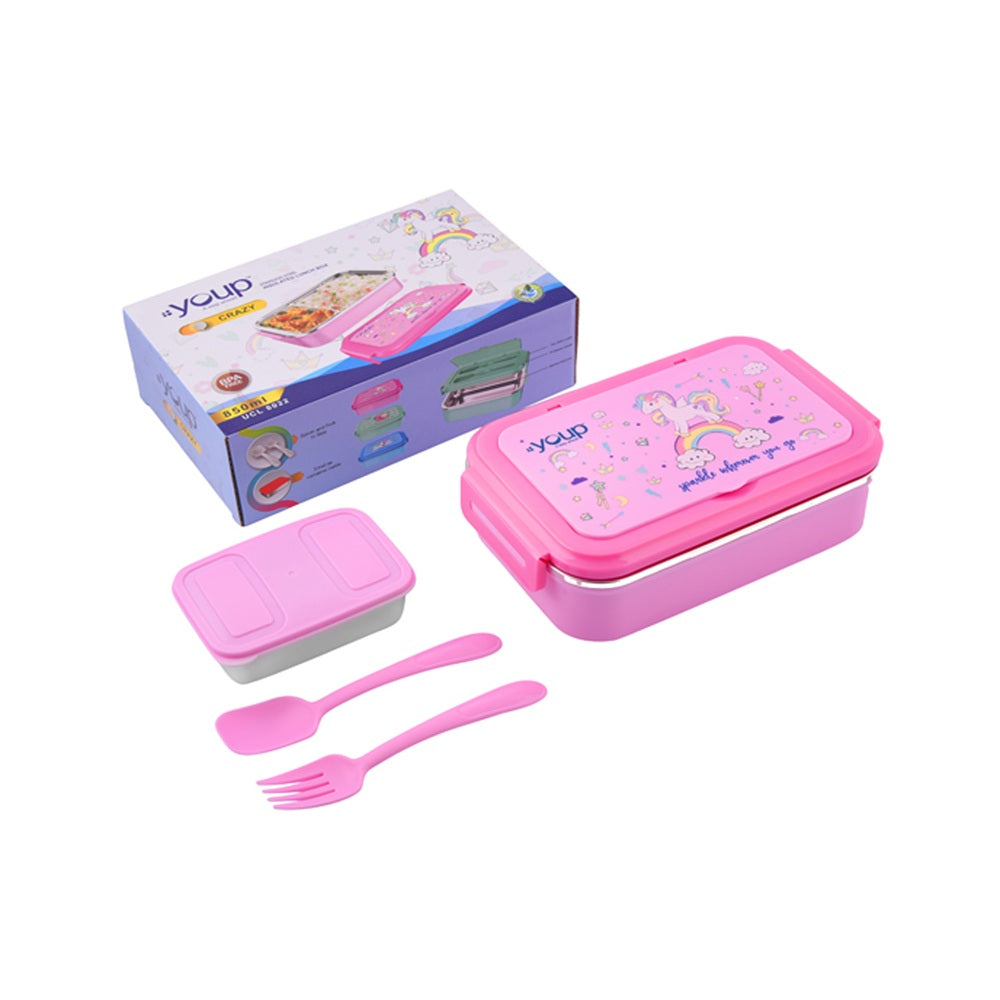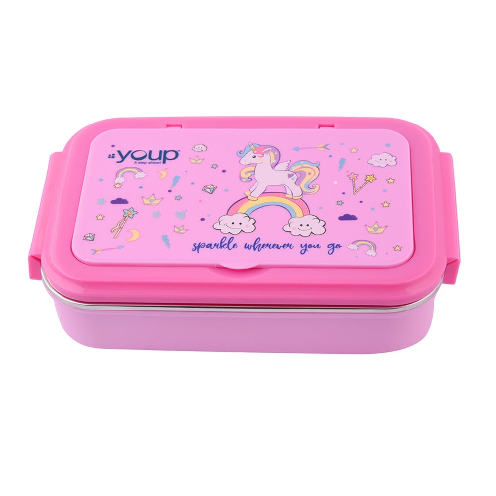 Youp Stainless Steel Pink Color Unicorn Theme Kids Lunch Box Crazy - 850 ml