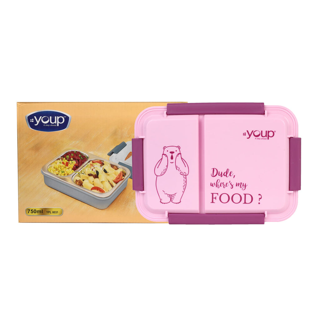 Donut by Youp is a high quality stainless steel 2 compartment Bento Lunch Box of 750 ml capacity that is especially designed for kids. Crafted from high quality stainless steel, these insulated lunch boxes help in keeping your child's food hot and fresh for long periods of time. They are made of food grade material with thermos-guard which ensures the preservation of the nutrition of the food. What’s more, its superior range of air-tight, spill-proof and moisture-free storage containers keeps your food fresh and tasty, just as home packed food is expected to be.