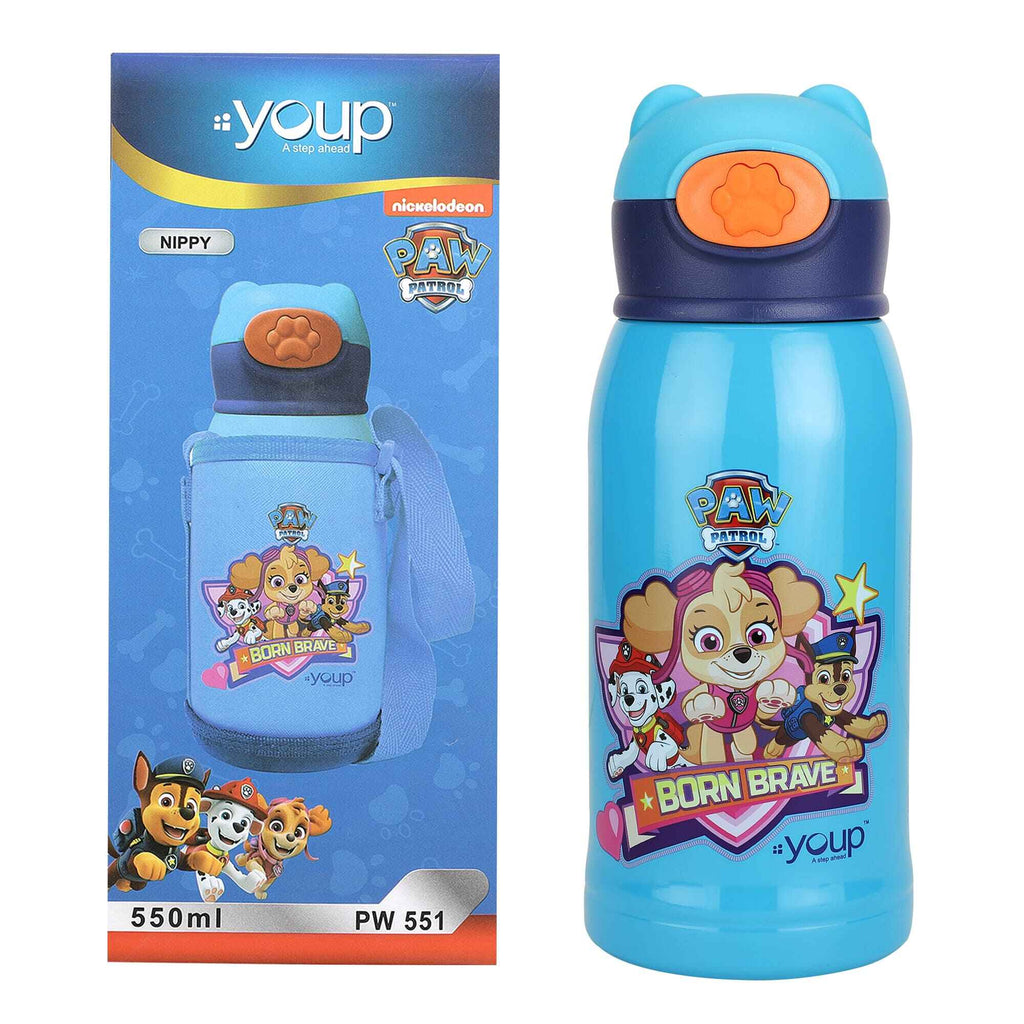 Hot or Cold, As You Need: Nippy, by Youp is a Thermosteel Paw Patrol theme kids water bottle of 550 ml capacity that is crafted from high quality stainless steel. It can be used for carrying both hot and cold beverages and will retain the temperature of beverages for longer hours.