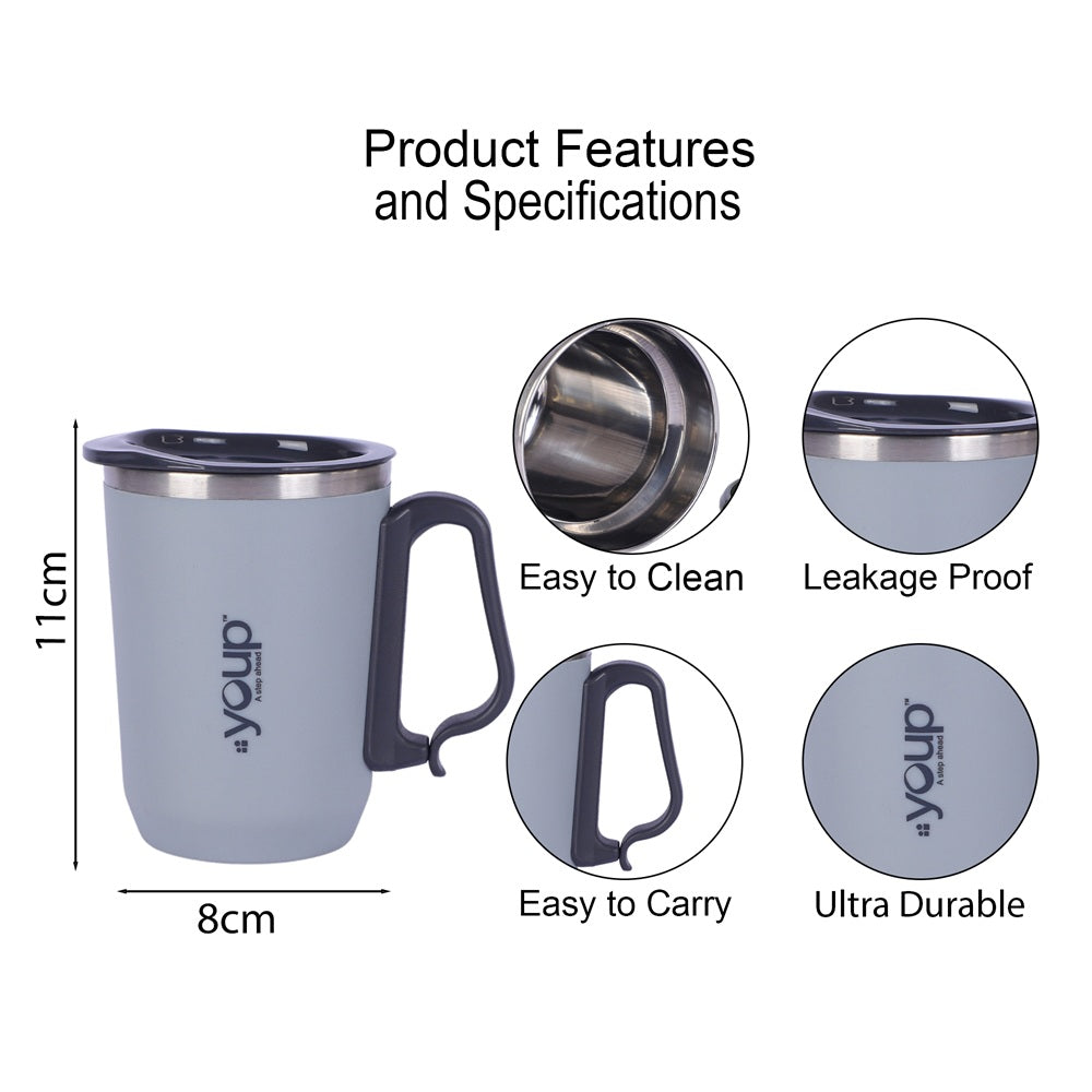 Hot or Cold, As You Need: Youp Galaxy Thermosteel coffee mug of 350 ml capacity is crafted from high quality stainless steel that can be used for carrying both hot and cold beverages and will retain the temperature of beverages for longer hours.